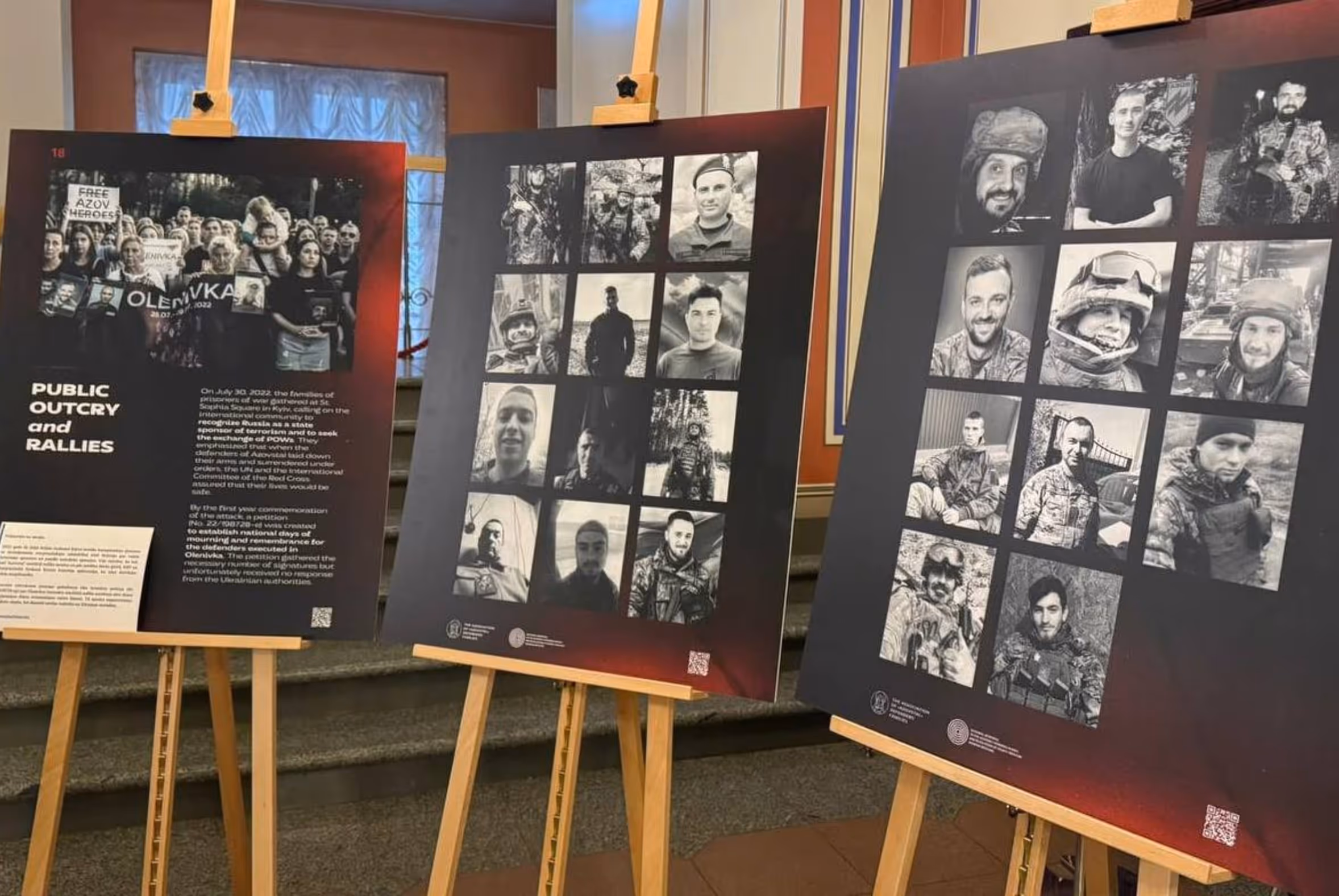The exhibition is dedicated to the terrorist attack in Olenivka – one of the most brutal crimes committed by russia against Ukrainian prisoners of war. As a result, 53 Ukrainian prisoners, defenders of Azovstal, were killed and more than 130 were injured.