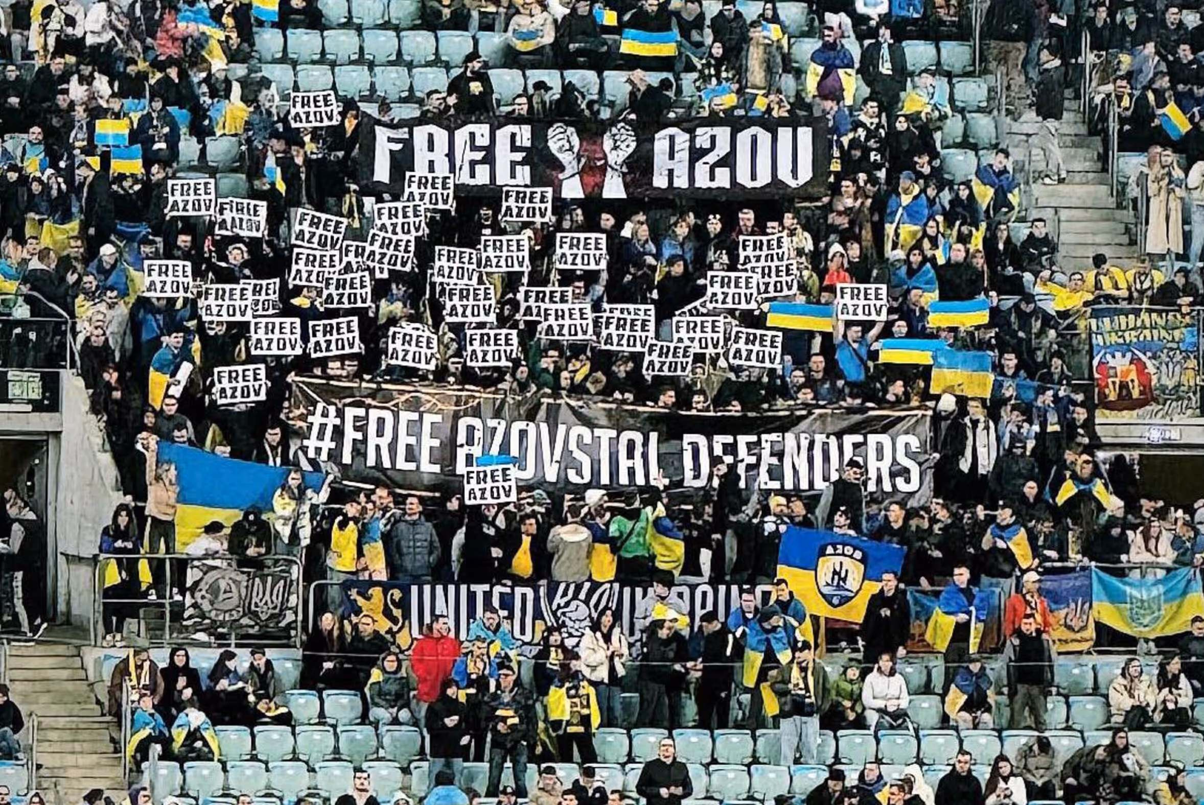 26 березня, під час фінального матчу плей-оф відбору на Євро-2024, в якому Збірна України перемогла Збірну Ісландії, українські фанати розгорнули численні банери «Free Azovstal Defenders» та «Free Azov». Учасники перформансу надіслали десятки світлин з матчу нашій Асоціації.